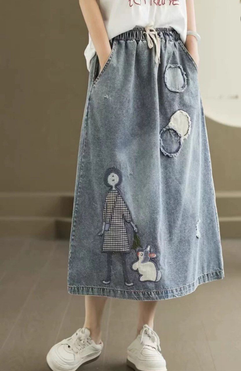 دامن جین تیکه دوزی پینترستی